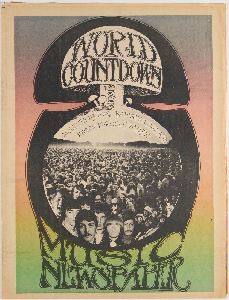 This lot features a RARE underground publication from the 1960s! The World Countdown Music Newspaper, also known as Royal's World Countdown, was published by Charles Royal in Los Angeles from 1966 until 1969, totaling 29 issues. The issue offered here is Volume 2. No. 6, released in 1967. The cover design was created by none other than poster legend Stanley Mouse. This is an amazing 1960s relic that should not be overlooked!