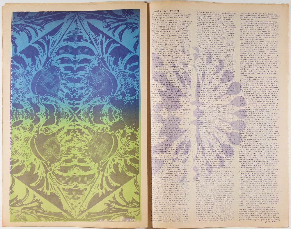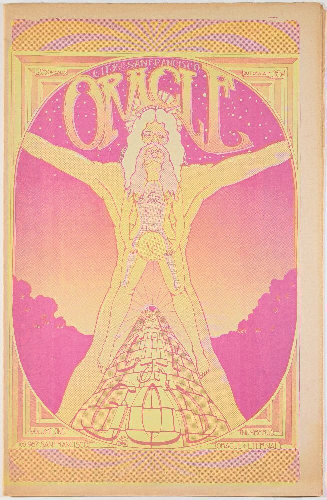 The San Francisco Oracle was an underground newspaper that published 12 issues between September 1966 and February 1968. It was distributed in the Haight Ashbury area and was an early member of the UPS (Underground Press Syndicate). It combined poetry, spirituality, and multicultural interests with psychedelic design reflecting on the countercultural community. Many issues had ads for music and records. The Oracle is the most famous and collectible of any underground paper. Contributors included many significant San Francisco area artists, including the late great Rick Griffin. It also featured such beat writers as Allen Ginsberg, Lawrence Ferlinghetti, and Michael McClure. This lot contains San Francisco Oracle Issue #11, released December 1967.