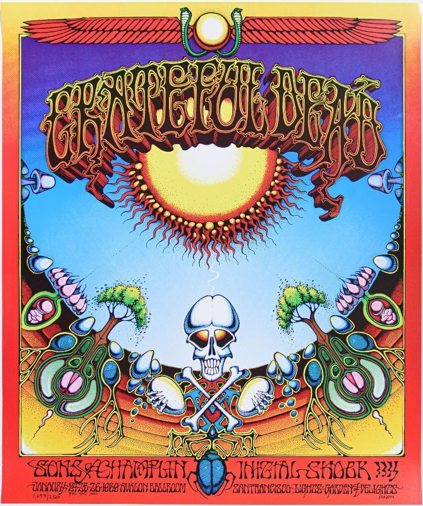 Rick Griffin's Masterpiece Aoxomoxoa is one of the most requested Grateful Dead designs of all time. The image was created for a 1969 Avalon Ballroom performance by the Dead and was soon thereafter appropriated by the band as cover art for their third LP.