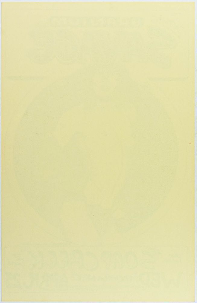 The Soap Creek Saloon was a small venue in Austin, Texas, which attracted many of the local hippies and cowboys to the music scene there, which was already a hot spot due to other area venues like Armadillo World Headquarters. Often, the same artists would design posters for both venues. This one advertised the Sons of Uranium Savage in April 1975 with artwork by Kerry Awn. This is the FIRST time it is appearing in our auction!