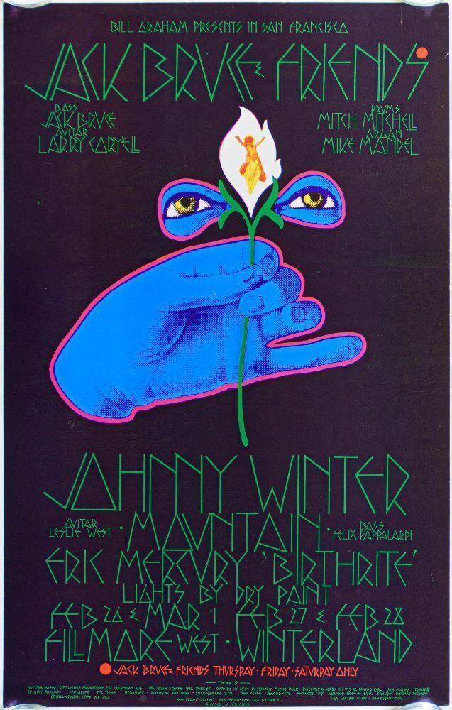 We don't offer many examples of this original Jack Bruce & Friends, First Printing poster in our auction! The great blues icon Johnny Winter was in support.