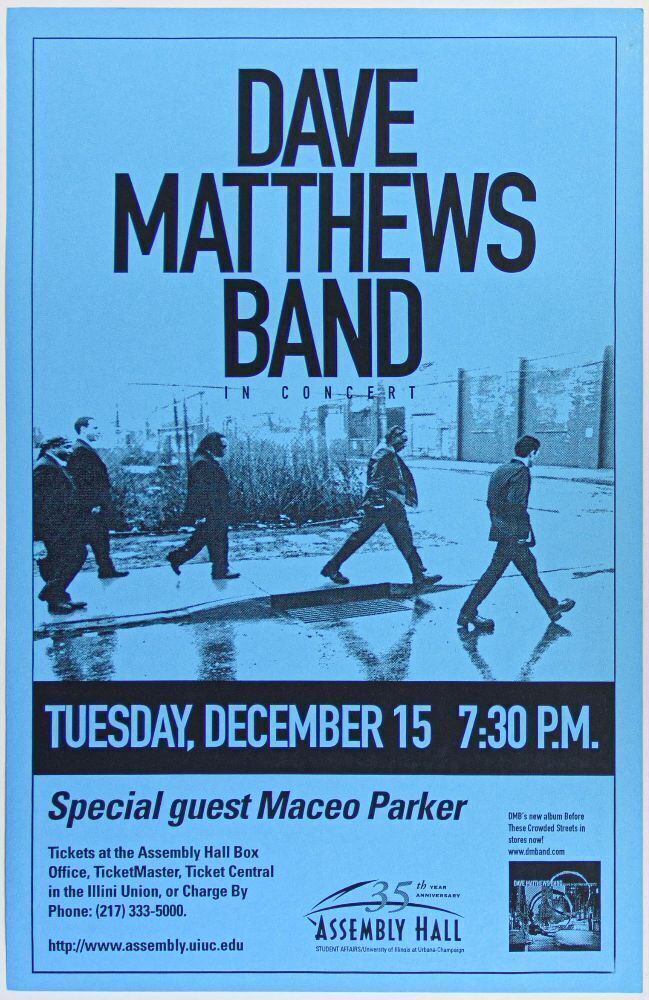 This lot features two original Dave Matthews Band Assembly Hall University of Illinois Posters: