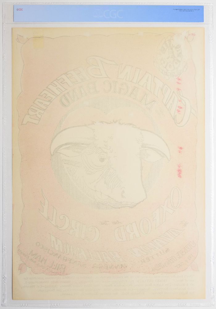 The FD-13 "Red Bull" original first printing poster has always been considered one of the set stoppers in The Family Dog Series. In addition to having a very attractive and popular design, this very early issue is historically important as it was the very FIRST poster designed by STANLEY MOUSE for The Family Dog. Captain Beefheart & His Magic Band and Oxford Circle were featured at the Avalon for a run of shows in summer 1966.