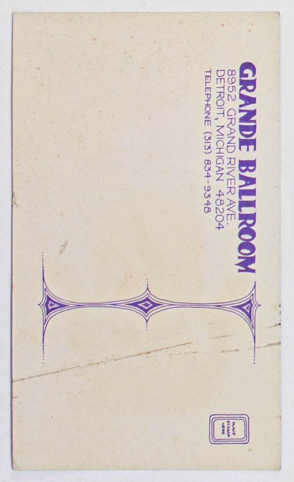 This card advertises Blue Cheer, MC5, and more performing at the venue in June 1968. The Grande Ballroom series produced some of the finest imagery from the 1960s music scene. In many cases, promoter Russ Gibb chose to only produce postcards to promote events. That being the case, Grande cards and card sets have become one of the most highly sought-after items by serious collectors.