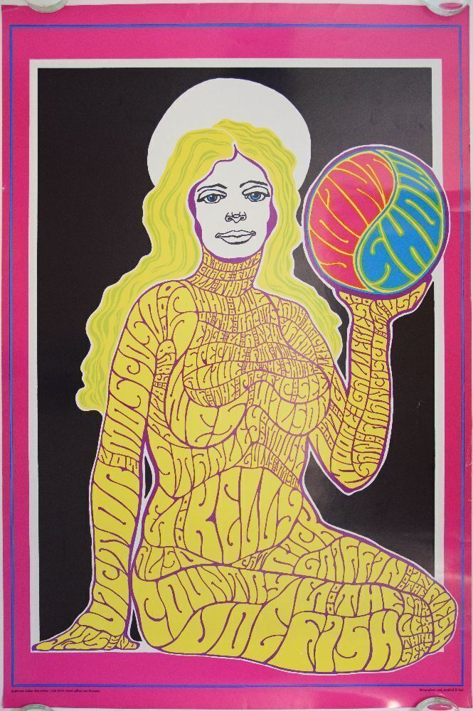 This large poster is artist Wes Wilson's contribution to the 1967 Joint show. The show featured the work of top poster artists of the day. The exhibition was held at the Moore gallery in San Francisco on 7/17/67. This image is shown in the Art of Rock book as plate 2.349.