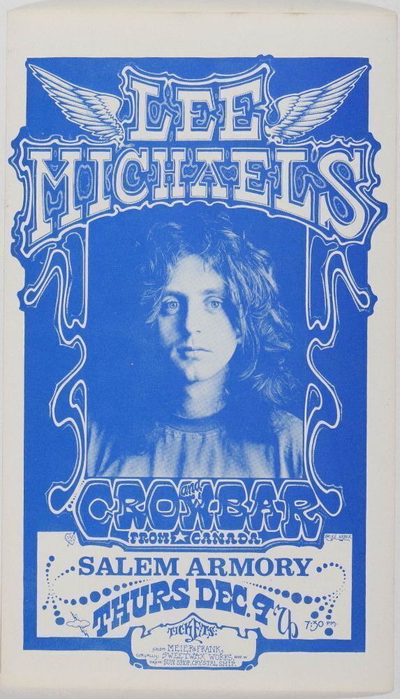 This handbill was produced for Lee Michaels and Crowbar appearing at the Salem Armory in Salem, Oregon on December 9th, 1971. Material from the Pacific Northwest is always considered special by collectors. They often tell a story all their own and have a different vibe than pieces from other parts of the country. Handbills like this are highly collectible and are notably representative of the music-loving culture that produced them.