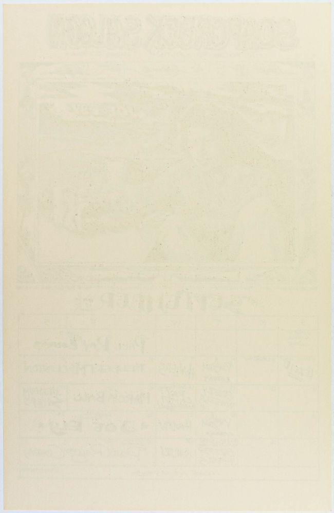 Soap Creek Saloon was a small venue in Austin, Texas, which attracted many of the local hippies and cowboys to the music scene there, which was already a hot spot due to other area venues like Armadillo World Headquarters. Often, the same artists would design posters for both venues. This calendar poster announced the venue's September 1977 events, with a drawing of Joe Ely by artist Kerry Awn.