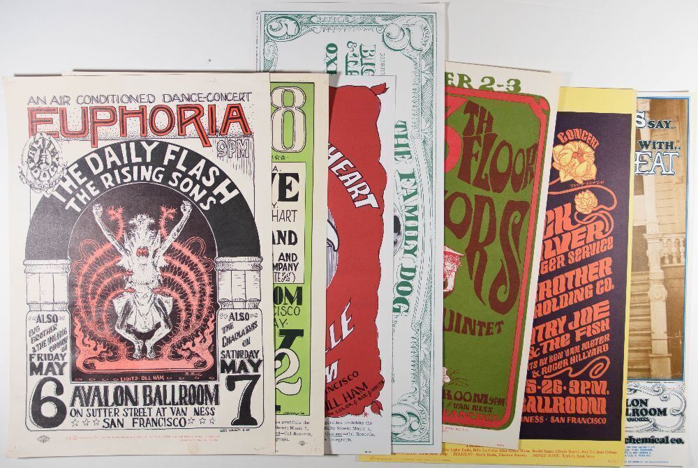 This lot features 7 post-concert reprint Family Dog Posters: FD-7, FD-9, FD-13, FD-19,FD-24,FD-36, and FD-56