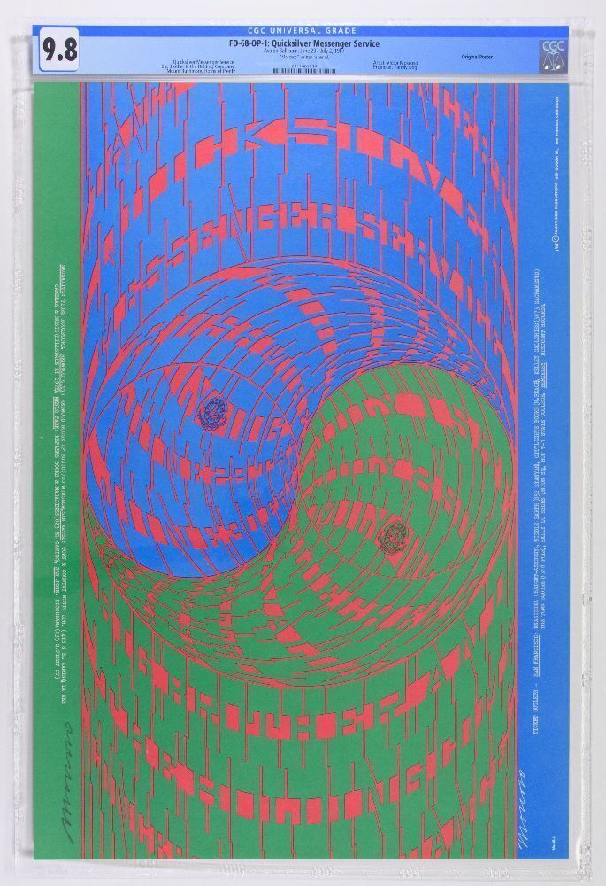In addition to being a member of the legendary Big Five San Francisco poster artists, Victor Moscoso is also thought by many in the mainstream art world to be at the very pinnacle of artistic talent. This poster is truly dazzling. This is an ultimate, yet unique example of vintage 1960s Psychedelic Art featuring Janis Joplin & Big Brother with the mighty Quicksilver Messenger Service.