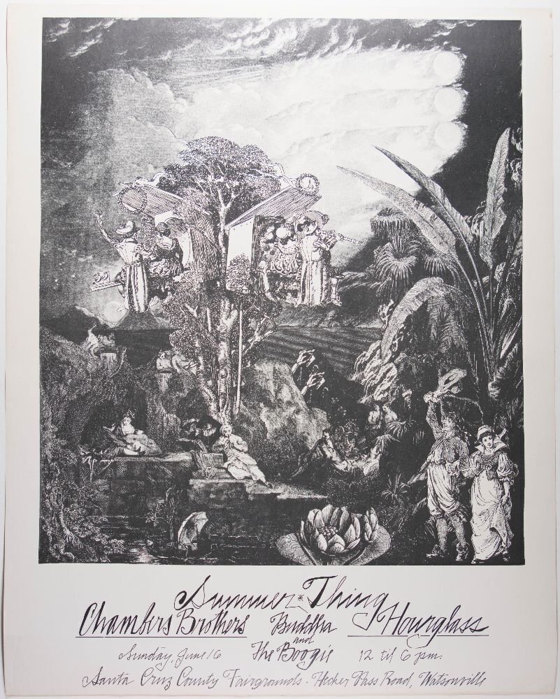 We are happy to offer this rare 1968 poster from the Santa Cruz County Fairgrounds! The lineup of Chambers Brothers and Hour Glass played on June 16th of that year. The L.A. band Hour Glass included pre-Allman Brothers Band founders, Duane and Gregg Allman. The group also featured three future studio musicians at the Fame Studios in Muscle Shoals: Pete Carr, Johnny Sandlin, and Paul Hornsby. The legacy of The Allman Brothers is undeniable in the world of collectibles. The Allman Brothers formed the year after this show.