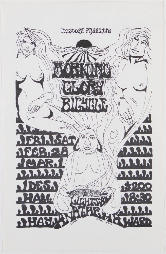 This vintage original handbill was produced for Morning Glory and Bicycle appearing at Ides Hall in Hayward, California in 1969.