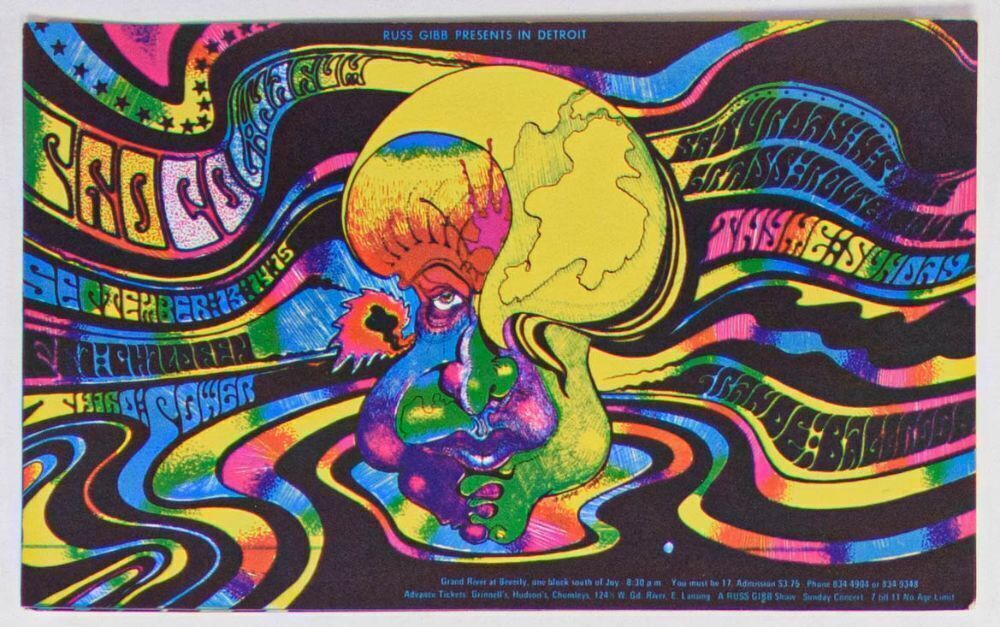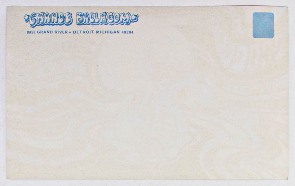 This card advertised Procol Harum and more performing at the Grande Ballroom in September 1968. The Grande Ballroom series produced some of the finest imagery from the 1960s music scene. In many cases, promoter Russ Gibb chose to only produce postcards to promote events. That being the case, Grande cards and card sets have become one of the most highly sought-after items by serious collectors.