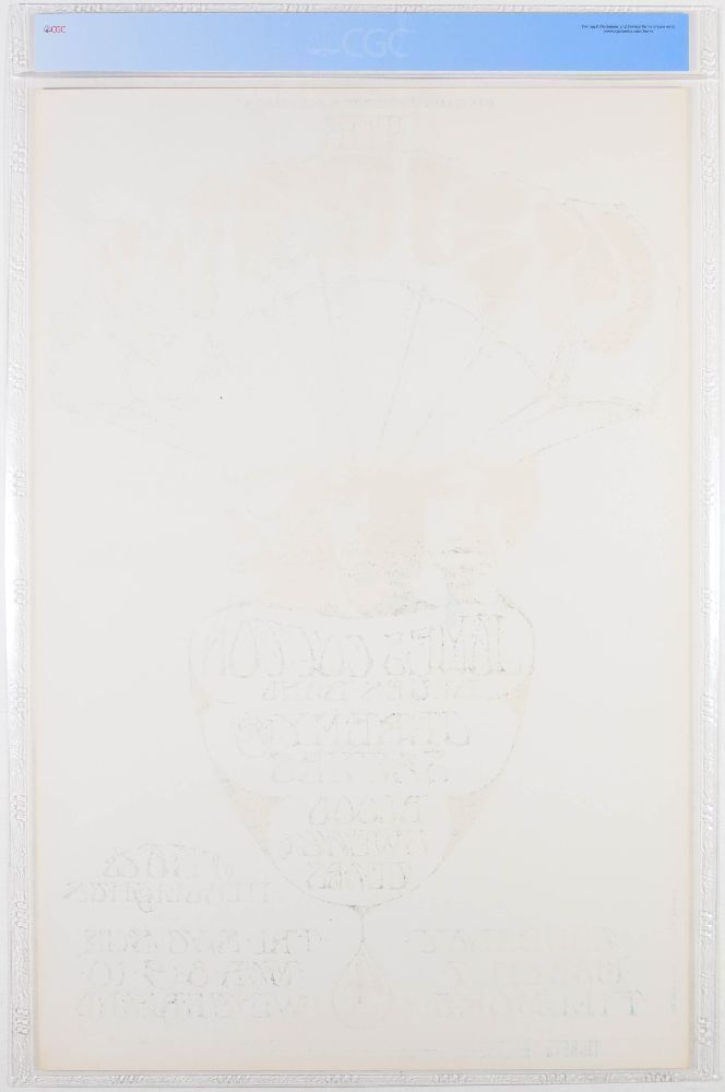 The legendary CREAM at the Fillmore & Winterland, designed by the legendary Stanley Mouse! James Cotton and Blood Sweat & Tears were in support. Cream was at the height of their game at the time of the shows. Having formed in 1966, the band met with critical acclaim. However, after a couple of years of heavy touring, the band was strained by internal conflict between Baker and Bruce. They would close down shop by the end of 1968.
