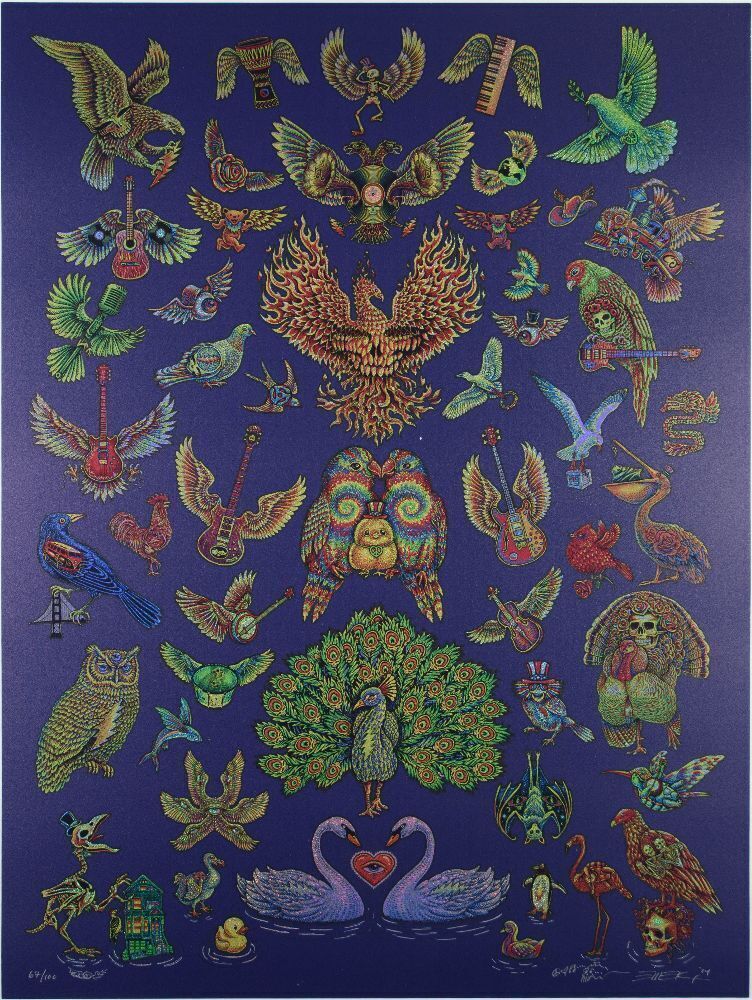 This amazing EMEK small-run edition black gloss print called Birds of a Feather was produced by the artist in 2024. EMEK has been celebrated as one of the top modern-era poster artists by his colleagues and fans alike. Small runs of signed material will always be one of the major keys to the kingdom in the world of collecting rare trophies.