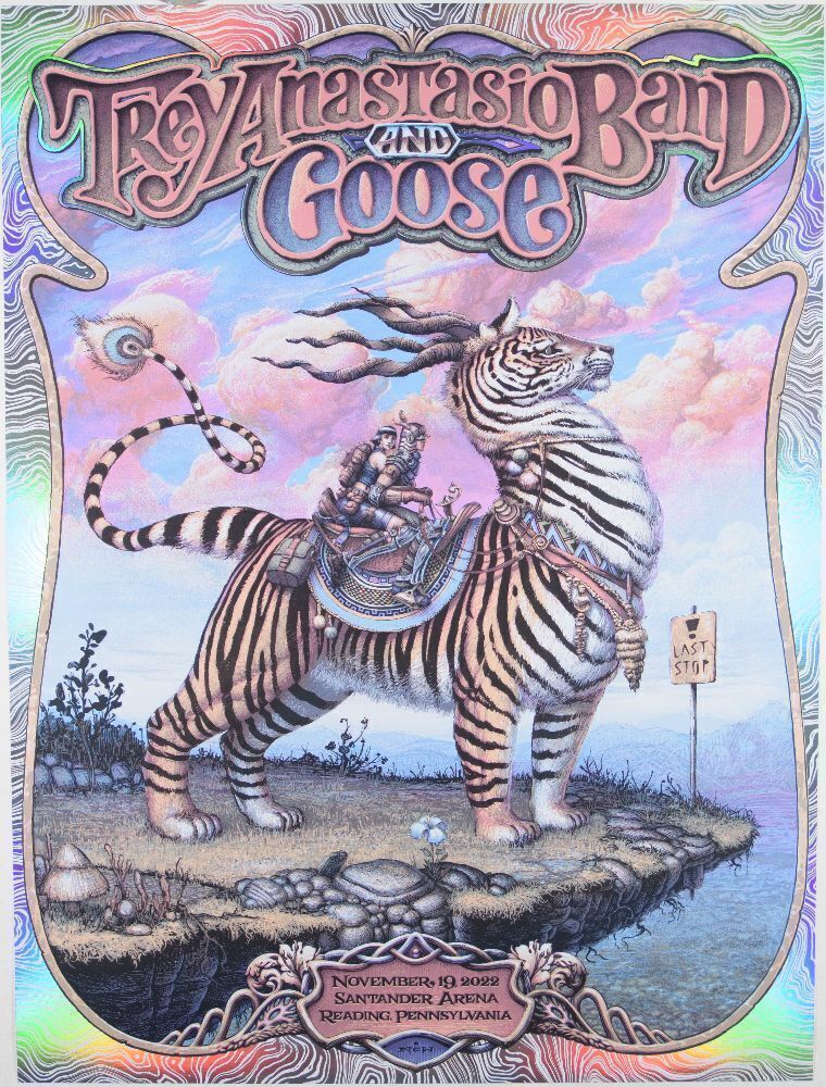 This beautiful rainbow foil poster was designed by N.C. Winters for the Trey Anastasio Band and Goose concert at Santander Arena in Reading, Pennsylvania, on November 19, 2022. This is the first time we've offered this issue in our auction!