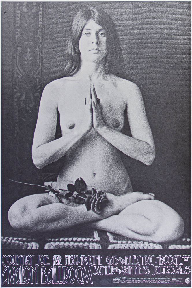 An interesting Family Dog poster showcasing Country Joe with Pacific Gas & Electric Boogie during the summer of 1968. It would be a year later that Country Joe & The Fish would become widely known for their memorable performance at the legendary Woodstock festival. This original first printing poster from the Avalon Ballroom in 1968 was designed by artist San Andreas Fault (Tad Hunter) from a photograph by Jerry Wainwright.