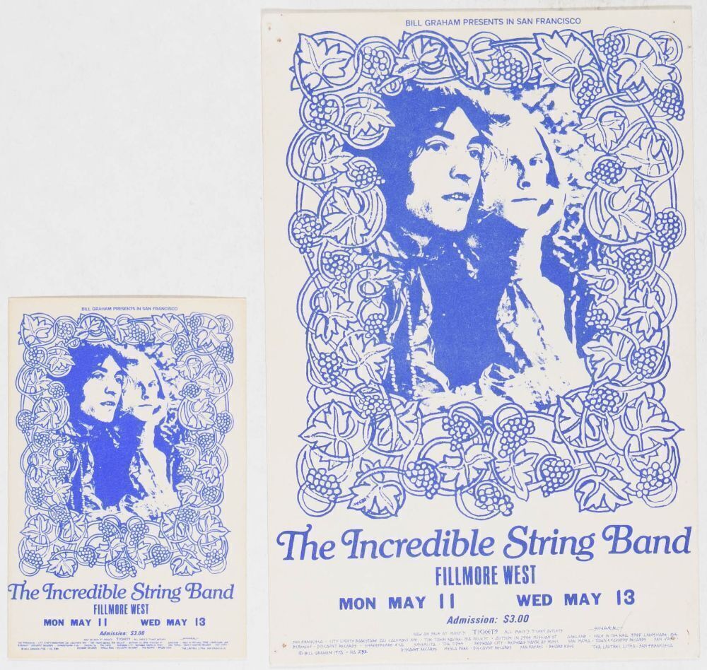 Here's an original postcard and ticket from the BG-232 event featuring the Incredible String Band at the Fillmore West in May 1970.