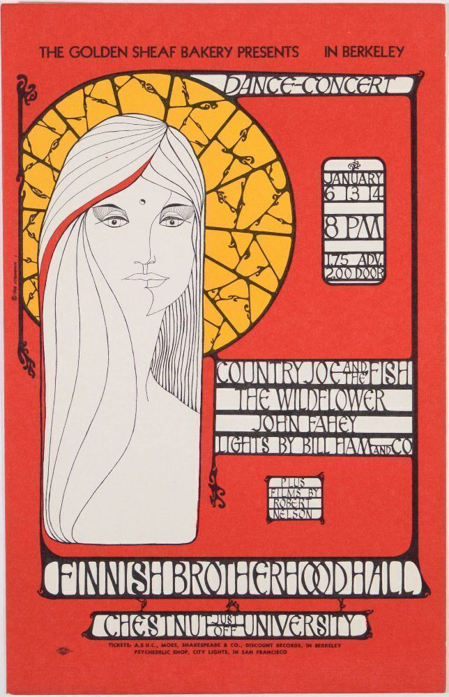 This attractive handbill was designed to advertise Country Joe & The Fish at Finnish Brotherhood Hall in Berkeley, CA. It features the same excellent artwork as the original poster for just a fraction of the cost!