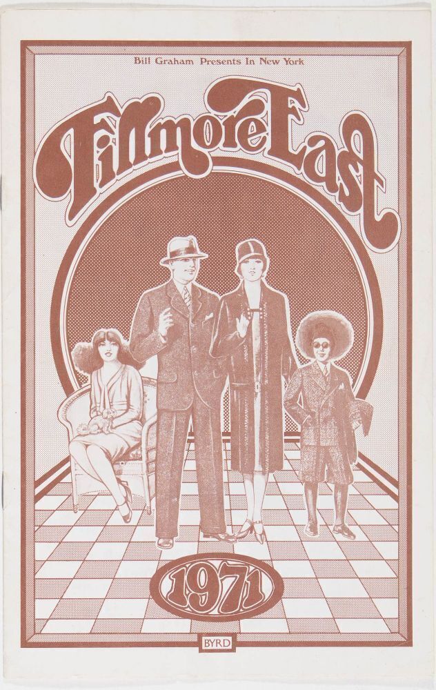 The Fillmore East was Bill Graham's contribution to the New York City music scene in the late 1960s. The venue operated from March 1968 to June 1971. During that period, the Fillmore East hosted some of the most memorable shows of the era. Unlike the West Coast Fillmore, the East Coast counterpart did not use many posters to promote each show. Instead, the promoter produced these vintage "Playbill" style programs, featuring beautiful artwork, album advertisements, and bios/photos of the band's upcoming shows at the venue.