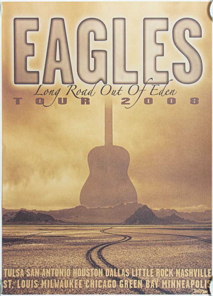 This numbered 247/700 limited edition poster was produced for the 2008 The Eagles, Long Road Out of Eden Tour.