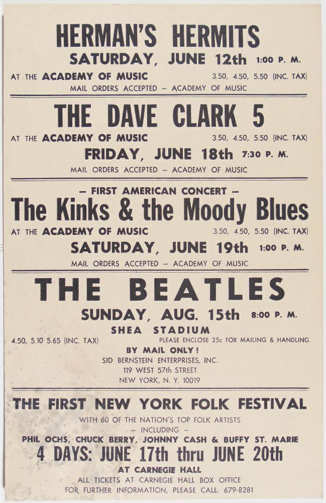 --VENUE: Academy of Music, Shea Stadium, Carnegie Hall