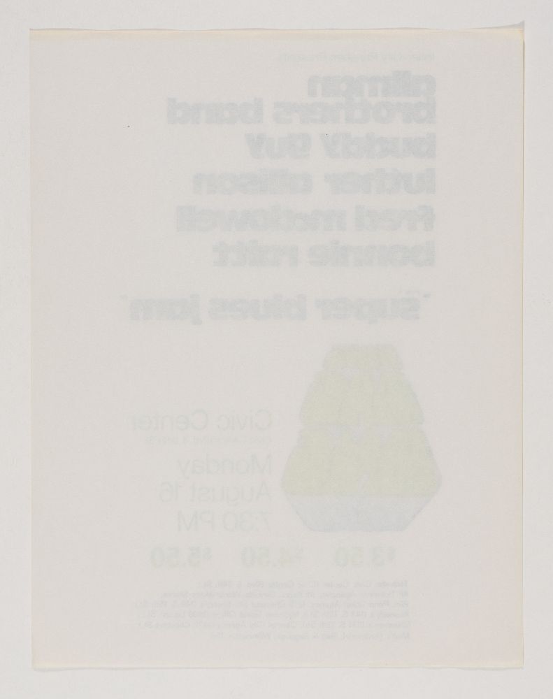 We are pleased to offer this rare handbill from 1971 for "Blues Bag One," a charity event for disadvantaged youth held at Philadelphia Civic Center. The Allman Brothers headlined this once-in-a-lifetime blues jam. Promoter William Kelley conceived of Blues Bag and, with the counsel of Duane Allman, booked a blues-heavy lineup of guitar virtuosos. The lineup included Luther Allison and Buddy Guy, featuring legendary bluesman Mississippi Fred McDowell and 22-year-old Bonnie Raitt.