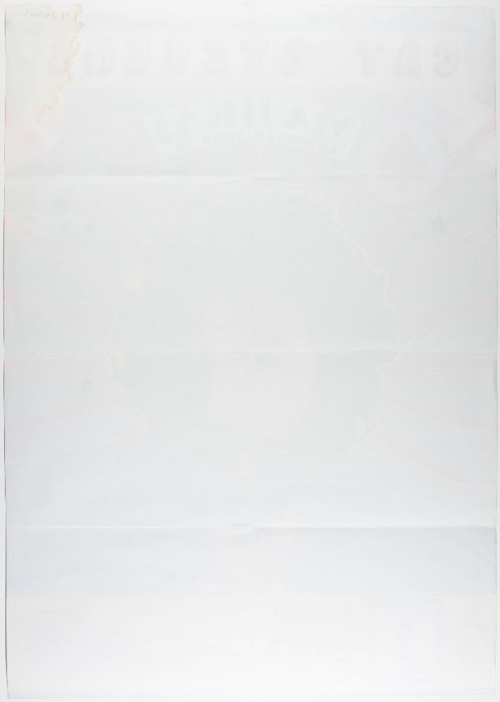 This poster was created for a stop on Cat Stevens's 1975 Majikat tour of Europe in support of his live album by the same name. This show occurred at Phillipshalle in Düsseldorf, Germany, on December 2nd. Having established a signature sound a few years prior, Cat Stevens enjoyed a string of success in the early seventies. His “Teaser and the Firecat” album had just been released. It reached number two on the charts and achieved gold record status within three weeks of its release. The legendary record included several timeless hits like "Peace Train," "Morning Has Broken," and "Moonshadow". We rarely see promotional material for Cat Stevens in our auction.