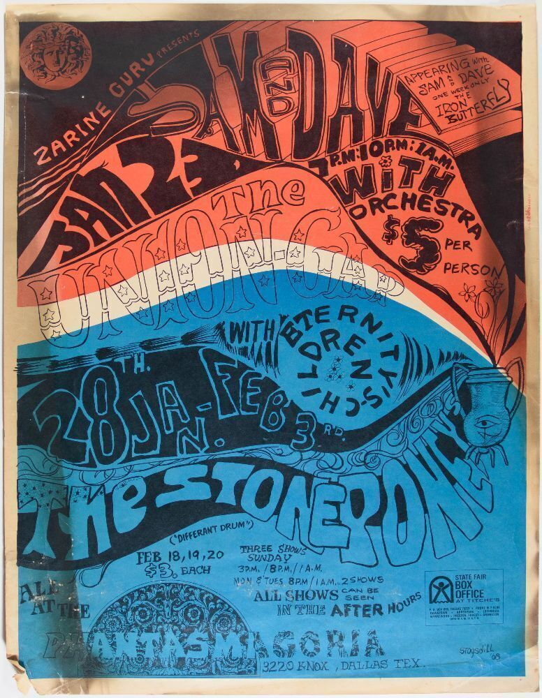 This RARE issue advertised a lineup of events at The Phantasmagoria in Dallas, Texas, in January and February 1968! Notably, the R&B duo Sam and Dave appeared with an EARLY Iron Butterfly. Also featured on the poster are the Union Gap and the Stone Poneys. The Stone Poneys were Linda Ronstadt's first band, and she went solo shortly after! 100% original with no restoration.