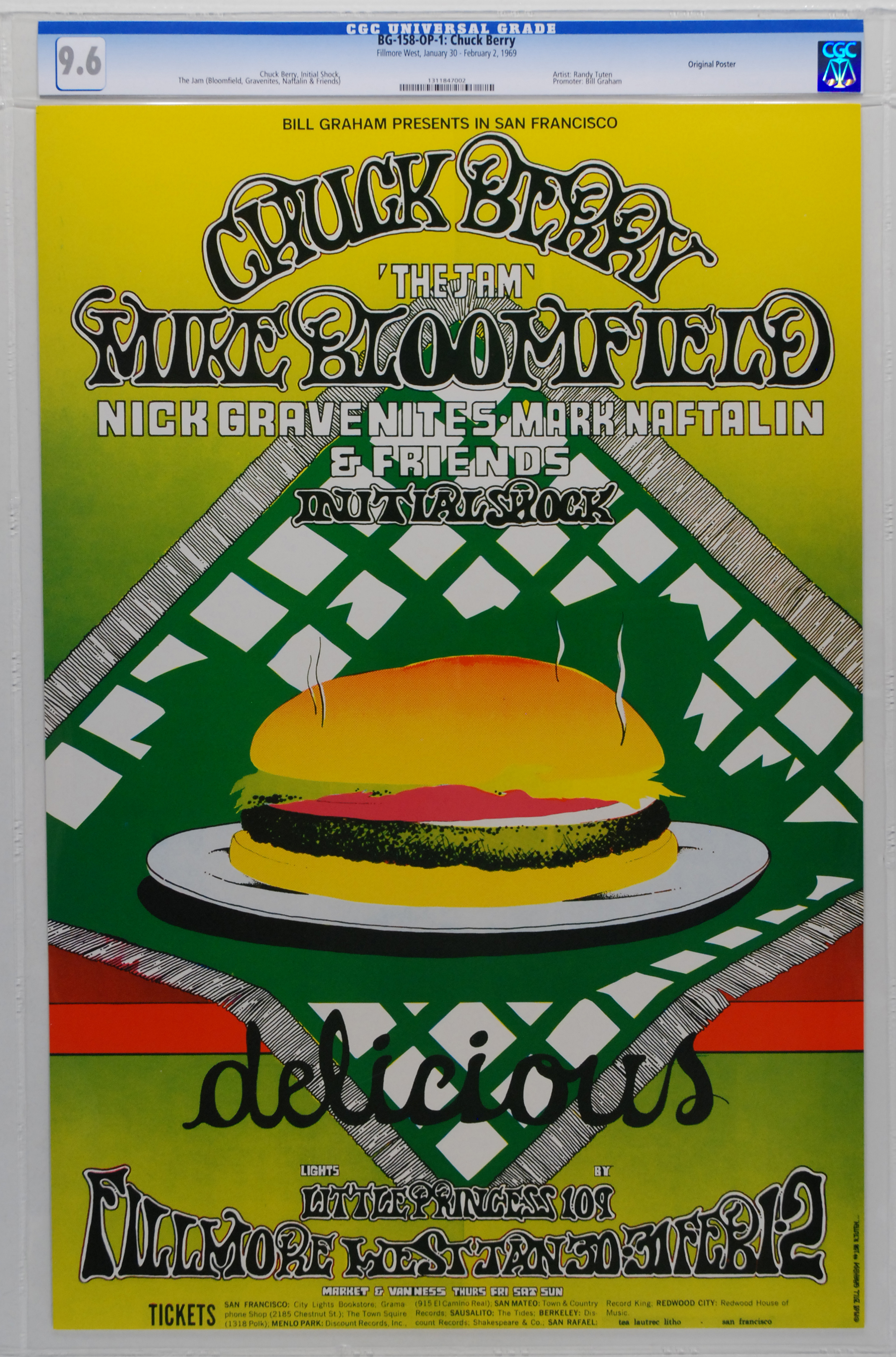 Chuck Berry posters have been rising in value ever since the rock n roll icon's recent passing. Early Fillmore posters are amongst the most desirable items ever issued and this piece is sure to enjoy spirited bidding from collectors looking to add a beautiful original poster to their collection at a very reasonable price point.
